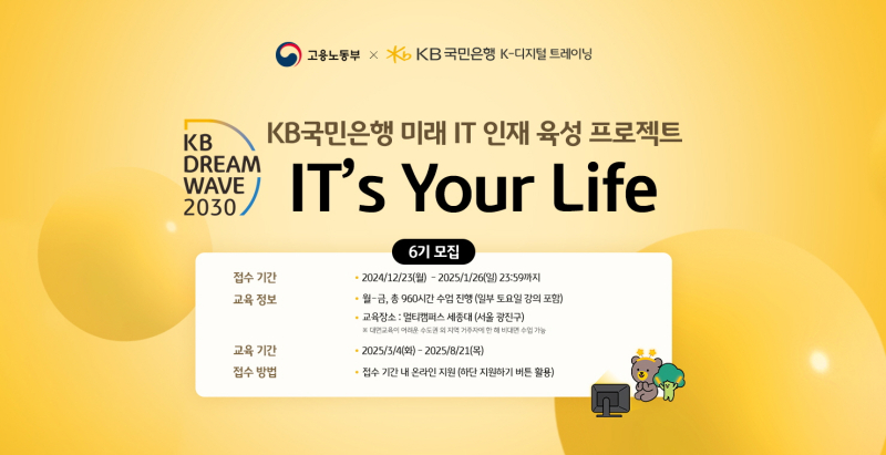 KB국민은행, 청년 IT 인재 육성 위한 ‘KB IT's Your Life’ 6기 모집 시작