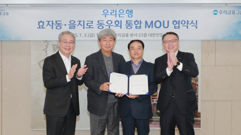 우리은행은 지난 3일 강원 상업은행 동우회장, 유중근 한일은행 동우회장과 임종룡 우리금융그룹 회장, 정진완 우리은행장 등이 참석한 가운데 양대 동우회 통합을 위한 양해각서(MOU)를 체결했습니다.