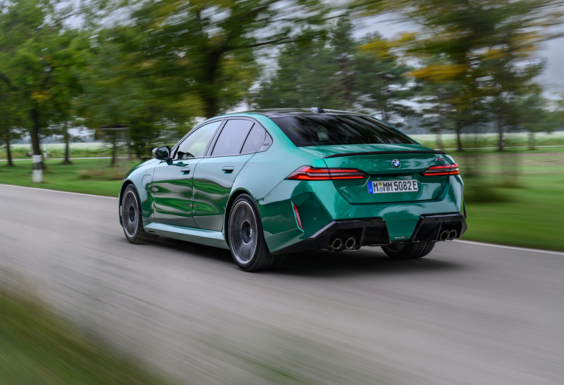 BMW 뉴 M5는 차별화된 디자인과 M 전용 요소를 더해 고성능 스포츠 세단 특유의 역동성을 강조했다. 먼저 휠 아치를 더욱 두툼하게 다듬어 근육질의 외관을 완성했고, M 전용 키드니 그릴과 BMW 아이코닉 글로우를 더해 카리스마 있는 인상을 보여준다. 또한, M 전용 외장 색상인 아일 오브 맨 그린(Isle of Man Green)도 새롭게 추가 제공한다.