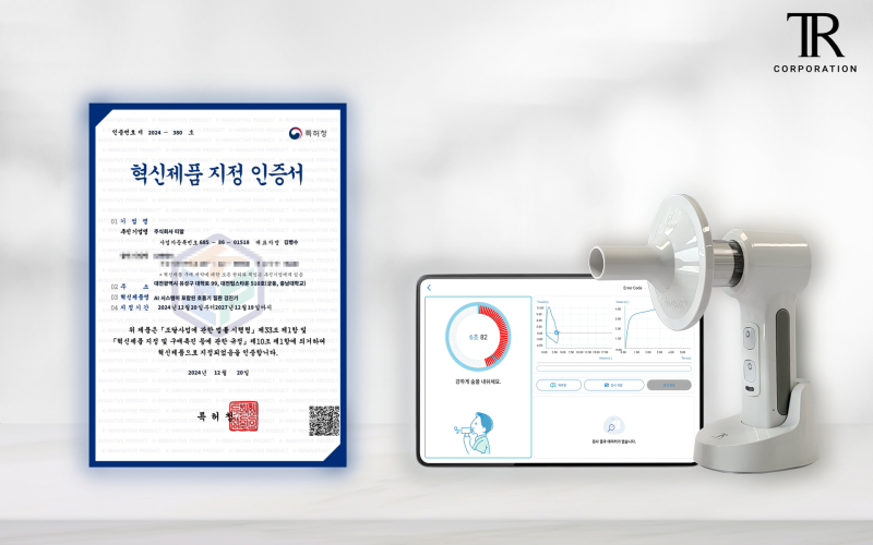 호흡기 질환 관련 의료기기 전문 기업 티알은 자사의 폐 기능 검진기 ‘THE SPIROKIT’이 특허청 2024년 하반기 혁신제품에 지정되었다고 밝혔다.