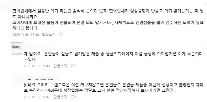 커뮤니티 이용자들은 “다운팩이 아니라 소비자에게 판매되는 실제 제품을 검사했어야 했다”, “협력업체가 아니라 브랜드 측에서 직접 의뢰를 맡겼어야 했다” 등의 아쉬운 반응을 드러냈다.