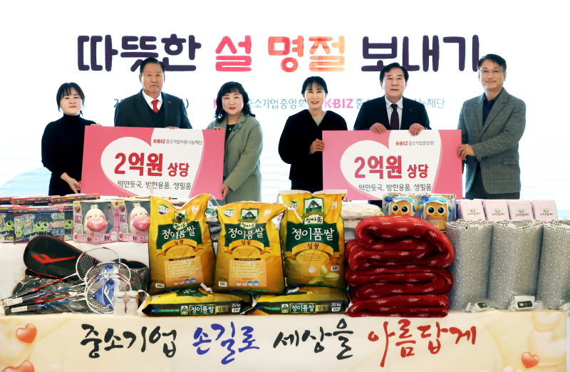 [서울경제TV=이수빈 기자] 중소기업중앙회(중기중앙회)와 중소기업사랑나눔재단은 서울 여의도 중기중앙회에서 설을 앞두고 취약계층들이 따뜻한 명절을 보낼 수 있도록 아동·노인·장애인·노숙인 복지시설 관장들을 초청해 떡만둣국 5만 2,000명분과 방한용품, 생필품 등을 전국 200여 복지시설에 전달했다고 21일 밝혔다.