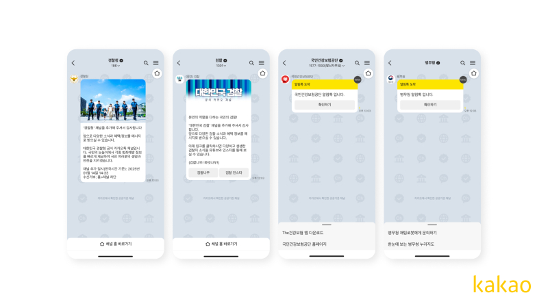 카카오가 이번에 제공하는 ‘공공기관 채널 전용 채팅방 배경’은 공공기관 카카오톡 채널에만 적용되고, 각 기관이 신청할 경우 후 검증 절차를 거쳐 적용된다. 이달 경찰청, 검찰청, 국민건강보험공단, 병무청 등 4개 주요 공공기관 채널에 전용 배경 화면이 우선 적용됐으며 이후 다른 공공기관으로 확대할 예정이다.