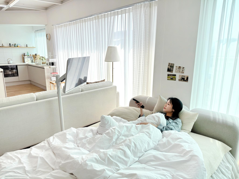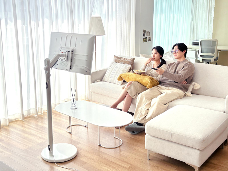또한 높이와 각도 조절 기능도 갖춰 사용자가 원하는 방식으로 활용 가능하며, TV와 스탠드 모두 화이트 색상으로 디자인되어 인테리어 효과를 더했다. 무선 및 터치 기능은 지원되지 않지만 합리적인 가격으로 소비자들의 호응을 얻고 있다.