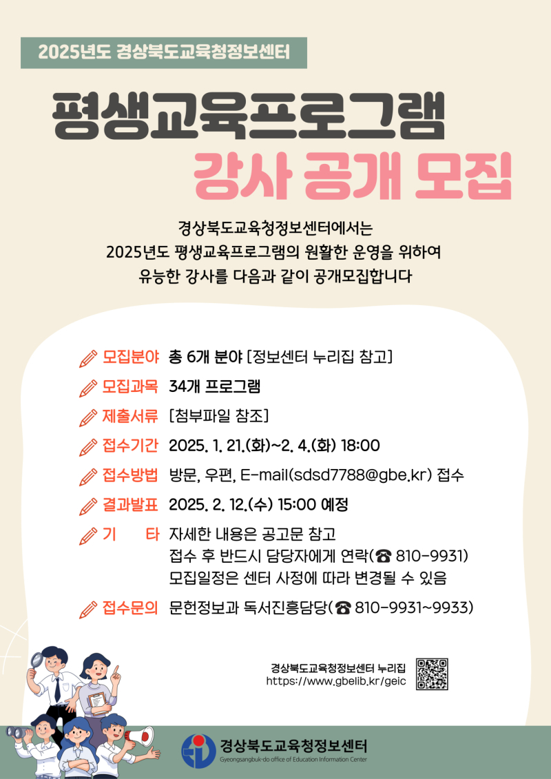 경상북도교육청정보센터, 2025년 평생교육프로그램 강사 공개 모집