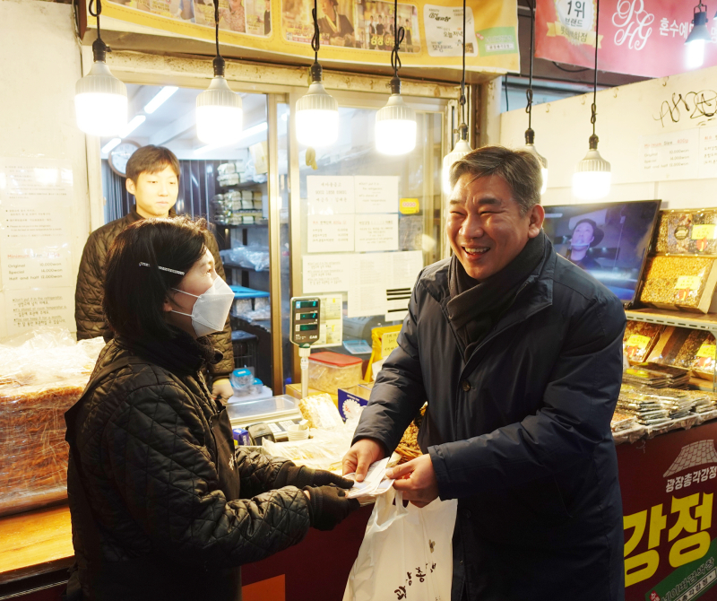 이날 광장시장에서는 설 명절을 맞아 구매 금액별 온누리상품권 환급과 경품 증정 이벤트가 진행됐다. 이 이벤트는 소비자들의 구매를 촉진하고, 상인들의 매출 증대를 도모하기 위한 행사로, 현장에서 소비자와 상인들이 활발히 참여했다. 최 옴부즈만은 전통시장 활성화와 상인들의 경제적 지원을 위한 지속적인 노력에 대해 강조했다.