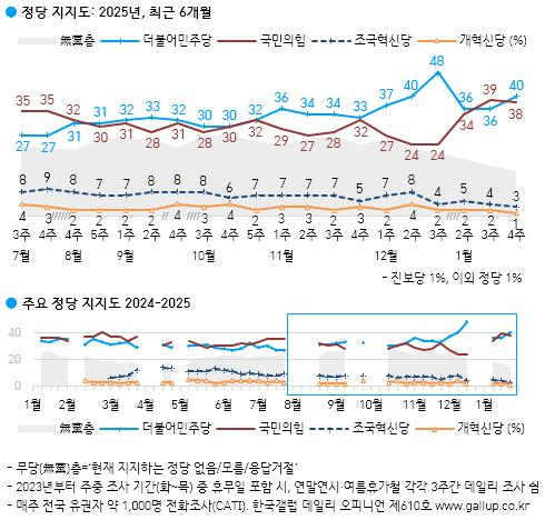 "계엄 전 비등 구도로 돌아가나"…국힘 38%·민주 40%[한국갤럽]