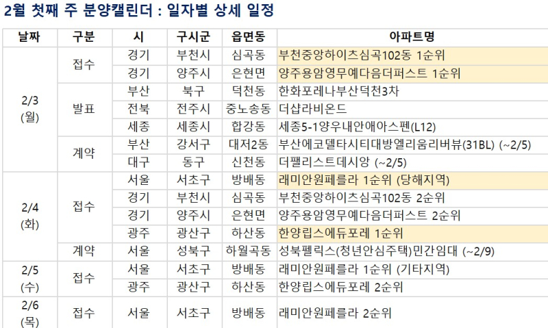 다음은 2월 첫째 주 주요 분양 일정.