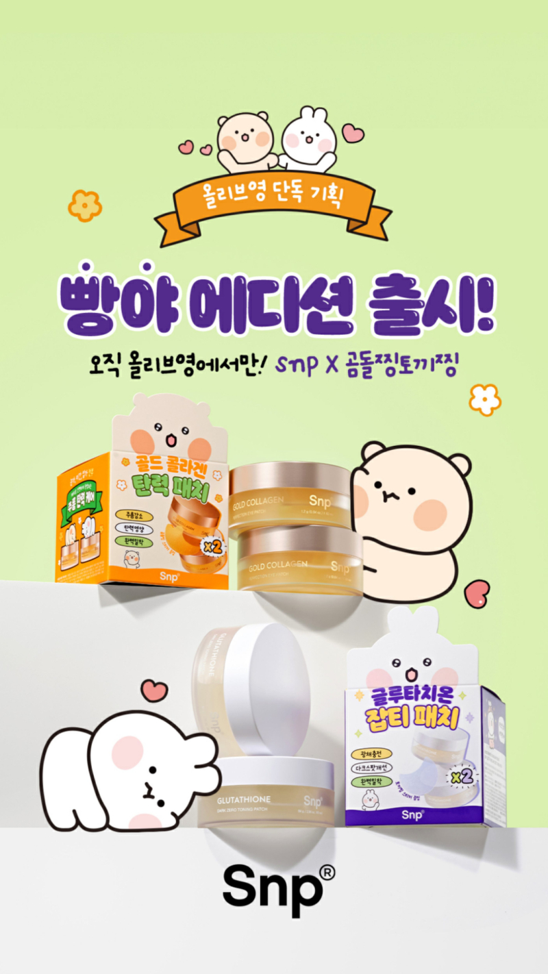 이번 ‘빵야에디션’ 기획세트는 Snp의 베스트셀러 패치 제품 2종을 ‘곰돌찡 토끼찡’만의 러블리한 무드로 재탄생시킨 것이 특징으로 '나랑 패치할래?'를 주제로 친구, 연인, 가족과 함께 즐길 수 있는 커플 패치의 의미를 담아 소비자들에게 특별한 경험을 제안한다.