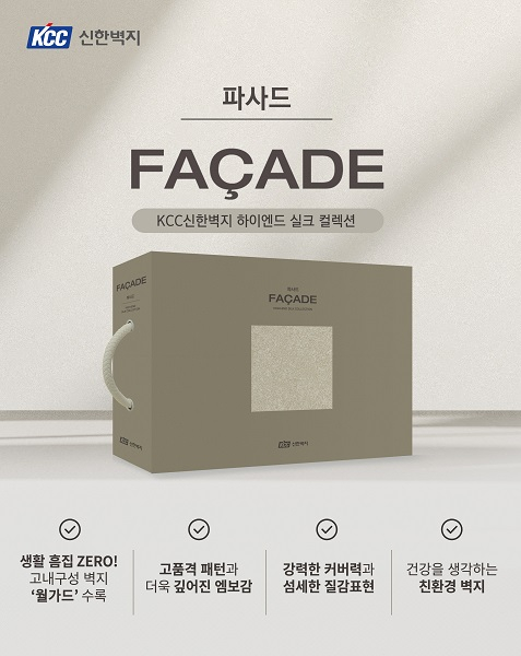 친환경 벽지 전문기업 KCC신한벽지가 2025년 신제품 하이엔드 실크벽지 '파사드(FACADE)’를 새롭게 선보인다고 밝혔다.