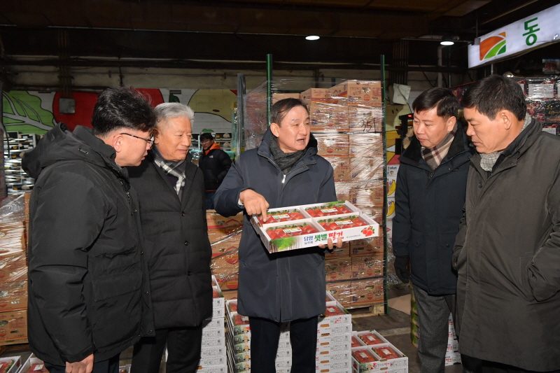 이날 이병노 담양군수는 관련 부서 공무원들과 정철원 담양군의회 의장, 지역농협, 도매시장 출하 작목회원 30여 명과 함께 농산물 경매를 참관하고 주요 도매법인과 간담회를 진행했다.