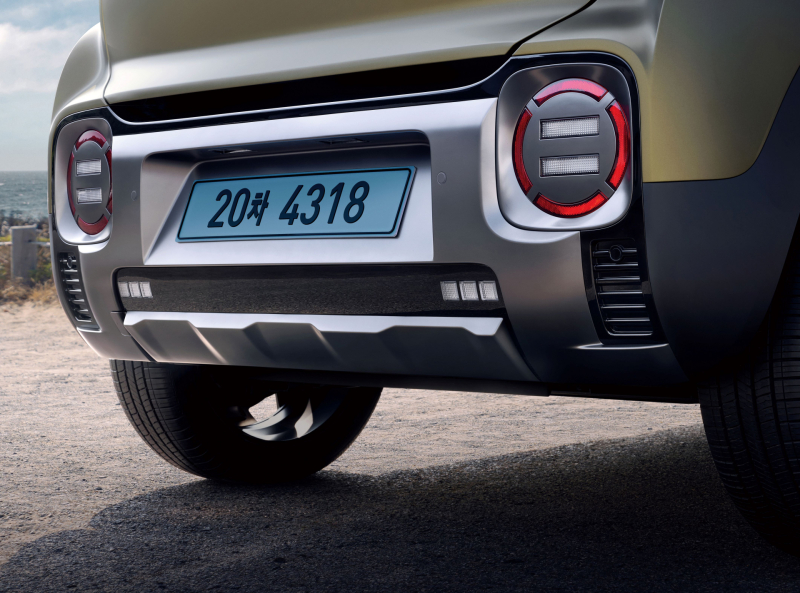 후면부의 새롭게 디자인된 LED 리어 콤비 램프는 픽셀 그래픽의 리어 범퍼와 함께 캐스퍼 일렉트릭 크로스의 아이코닉함과 미래지향적인 이미지를 강조해준다.