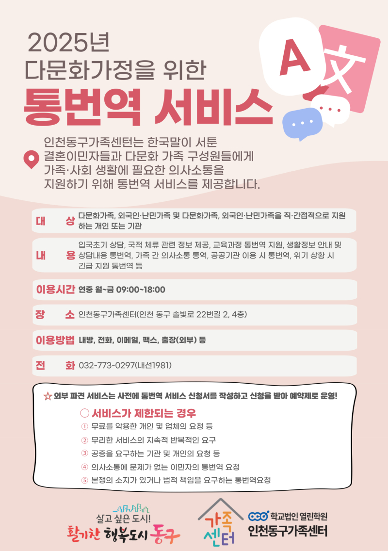 [서울경제TV 인천=김혜준 기자] 인천동구가족센터가 결혼이민자 통번역서비스 사업을 추진합니다.