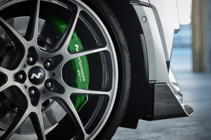 현대차는 DK 에디션에 카본 소재를 적용해 가벼우면서 양력 감소를 통해 고속 주행 안정성을 강화한 ▲ 카본 프론트 스플리터 ▲ 카본 사이드 스커트 ▲ 카본 리어 디퓨저 ▲ 카본 리어 윙 스포일러를 적용했다.