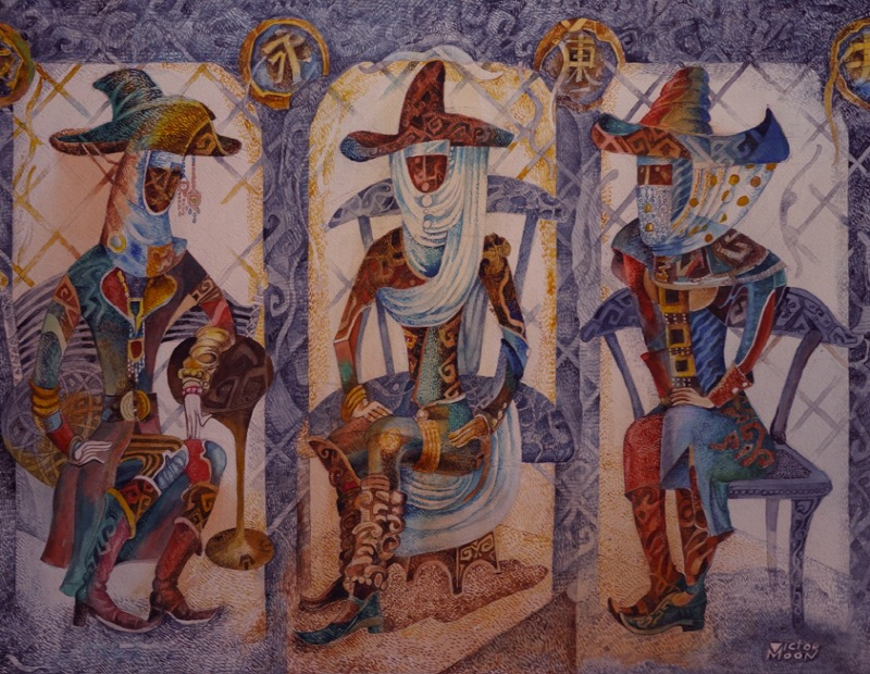 이번 작품은 기존 비슷한 구도의 작품처럼 세 장면, 세 인물 배치 방식으로 구성됐다. 카자흐스탄 전통 극장 의상을 입은 세 명의 인물을 통해 당시의 전통 의상뿐만 아니라 장식품과 가구까지 함께 담아내 독특한 문화를 경험할 수 있도록 했다.
