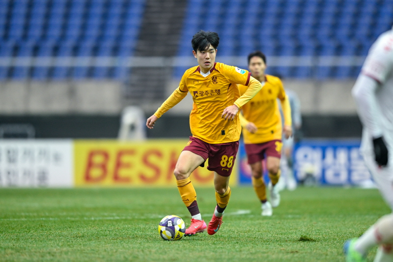 이후 경기는 잠시 소강상태에 접어들었다. 양 팀이 무리하게 공격을 진행하지 않았고 탐색전 양상의 흐름이 반복됐다. 전반 종료가 임박하자 광주가 다시 힘을 냈다. 36분 박인혁의 호쾌한 왼발 슈팅이 나왔다. 계속된 공격 찬스에서 박인혁은 또 한 번 번뜩였다. 오른쪽 측면에서 빠른 침투로 헤이스가 내준 공을 컨트롤 했고 그대로 슈팅으로 가져갔다. 안준수 골키퍼 맞고 나온 공을 문민서가 환상적인 발리 슈팅으로 가져갔으나 골문을 빗겨나갔다.