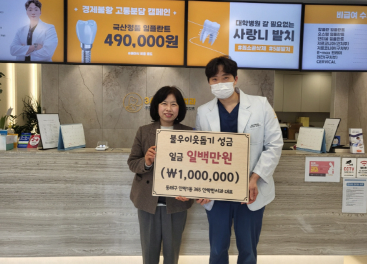 365안락한치과, 이웃돕기 성금 기부하며 나눔 실천