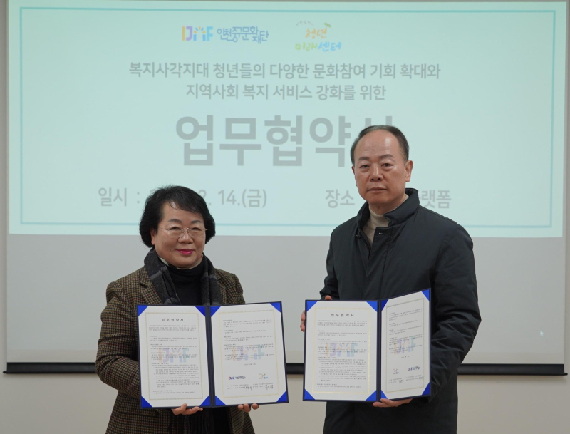 [서울경제TV 인천=김혜준 기자] 인천시청년미래센터와 인천중구문화재단이 협약을 체결했습니다.