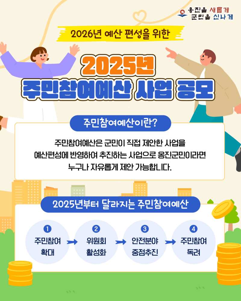 [서울경제TV 인천=김혜준 기자] 인천 옹진군이 2025 주민참여예산 사업 공모를 접수합니다.