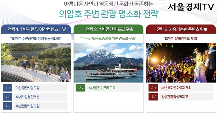 세부 추진 과제는 크게 6가지로 ▲야간 경관시설 도입 ▲수변 시설 경관개선 ▲수변 관광시설 도입 ▲수변공간 인프라 구축 ▲수변특화 문화축제 개최 ▲일상관광 활성화 제고다.