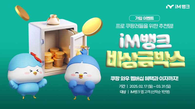 iM뱅크, ‘비상금박스’ 고객에게 쿠팡 와우 구독료 캐시백