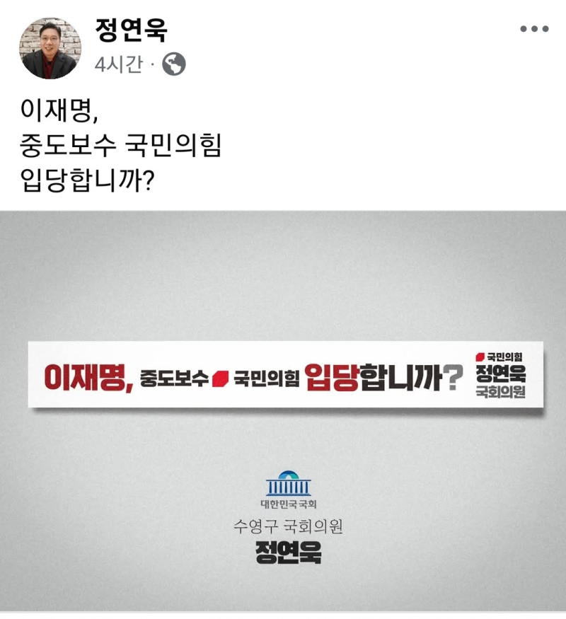 정연욱 의원 “이재명, 중도보수 국민의힘 입당합니까?”