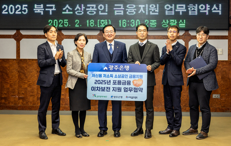 21일 광주은행에 따르면 이번 협약은 고금리, 고물가 등 경기 침체로 어려움을 겪고 있는 서민들의 금융 부담을 덜기 위해 마련되었으며, 광주은행은 사업장이 북구 관내에 소재한 저신용·저소득 소상공인들에게 서민금융 신규 대출을 지원한다. 대상 상품은 포용금융 특별대출, KJB새희망홀씨Ⅱ, 햇살론15, 햇살론뱅크, 최저신용자특례보증 총 5종이며, 북구청은 취급 후 1년간 5.0%의 이차보전을 약속했다.