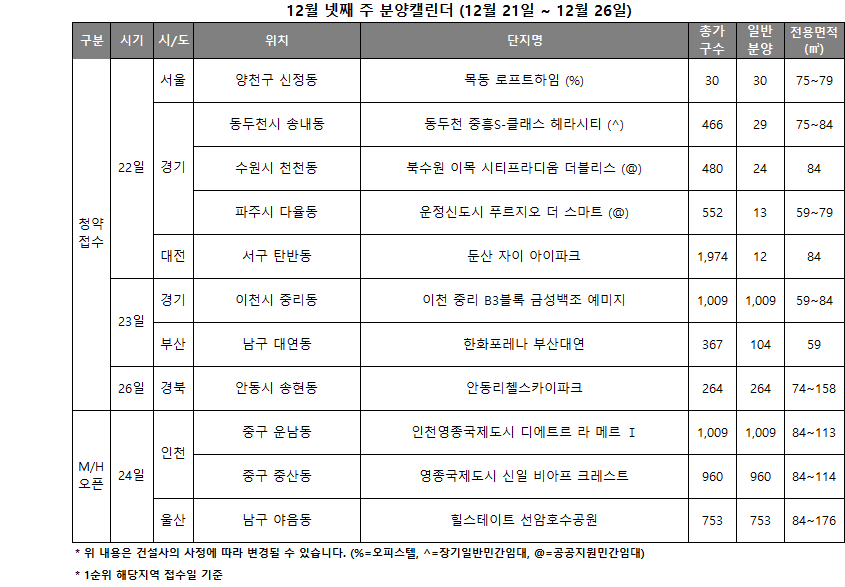 - [부동산 캘린더] 내주 7849가구 공급…"연말 맞이 풍성한 물량"