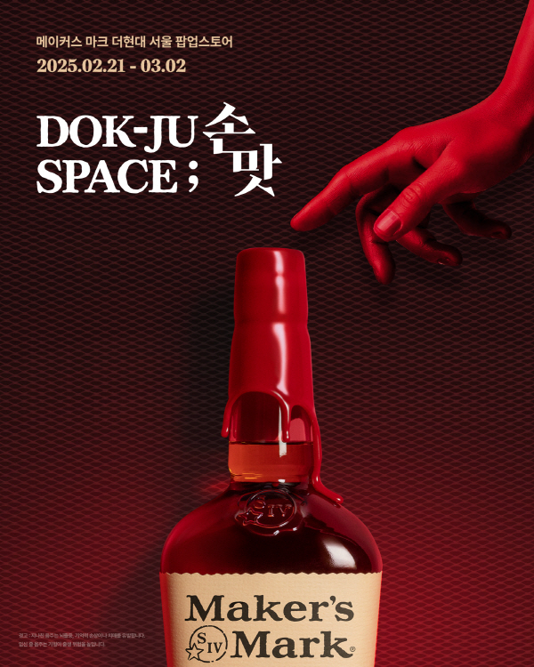 핸드메이드 버번 위스키 메이커스 마크(Maker’s Mark)가 오는 3월 2일까지 ‘더현대 서울’에서 체험형 팝업스토어 ‘독주 스페이스(Dok-Ju Space); 손맛’을 진행한다고 밝혔다.