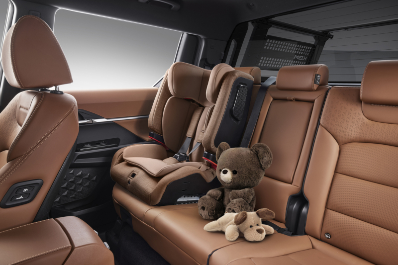 실내는 각종 레저 활동에 필요한 장비들을 여유롭게 실을 수 있는 최대 500kg의 적재 중량을 제공하면서도 중형 SUV 수준의 넓은 실내 공간을 갖췄다. △국내 SUV 모델 동등 수준의 커플디스턴스(앞좌석부터 뒷좌석 힙 포인트까지의 거리) △2열 슬라이딩 △32도 리클라이닝 시트 △2열 헤드룸(1002mm) 등 넉넉한 2열 공간을 확보해 승객 편의성을 극대화했다.