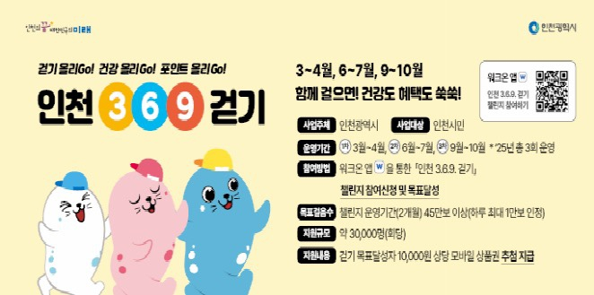 인천시, 걷기 운동 활성화… 3.6.9 챌린지 시작