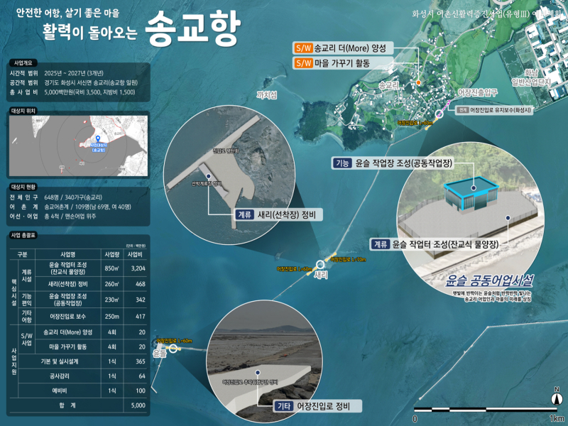 총 50억 원을 투입해 송교항 일대를 정비할 계획이며, 주요 사업으로는 ▲물양장 및 공동작업장 조성 ▲어장진입로 및 선착장 보수가 포함됩니다. 이달 중 기본계획 및 인허가 사전 검토에 착수해 2027년 준공을 목표로 추진됩니다. /hursunny1015@sedaily.com
