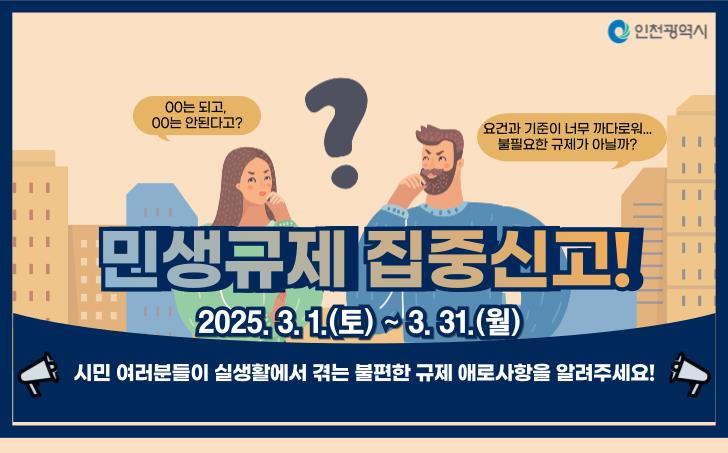 인천시, 3월 한 달간 ‘민생규제 집중신고기간’ 운영