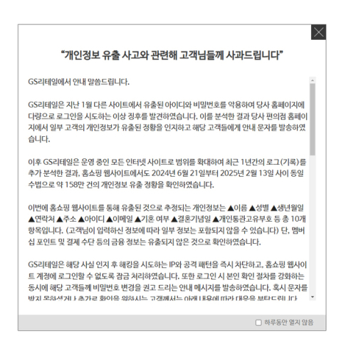 다만 GS리테일은 멤버십 포인트와 결제 수단 등의 금융 정보는 유출되지 않은 것으로 확인했다고 밝혔다.