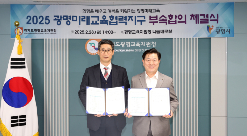 28일 시에 따르면, ‘2025 광명미래교육협력지구 부속합의’를 체결해 24개 교육 사업을 추진합니다. 올해 총사업비 35억 7천 826만 원 중 81%에 해당하는 28억 8천 426만 원을 광명시가 지원할 예정입니다.