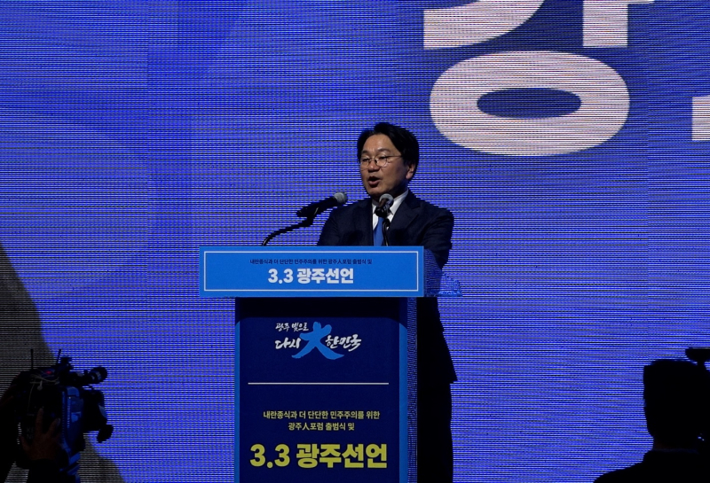 이재명 더불어민주당 대표는 최현희 대표위원이 대독한 축전을 통해 “광주人포럼 출범식 및 3·3 광주선언에 함께해 준 모든 분께 감사드린다”며 “민주주의를 지키고 국민이 주인인 나라를 만들기 위해 다시 한번, 광주에서 희망의 불꽃을 밝혀야 한다”고 전했다.