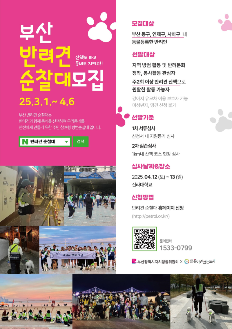 부산시 자치경찰위원회, '반려견 순찰대' 3개 구 추가…동구·사하구·연제구 모집