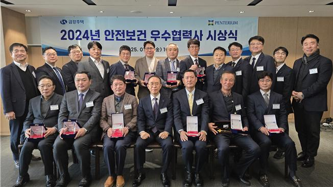 지난 1월 17일 금강주택 본사에서 진행된 이번 시상식은 우수 협력사를 대상으로 건설현장 안전사고 예방 및 중대재해 근절을 도모하고자 마련했으며, 총 220개의 협력업체 중 지난 2024년 1년간의 평가과정을 거쳐 선발된 공종별 우수협력사 10개사에 감사패와 포상품을 수여했다.