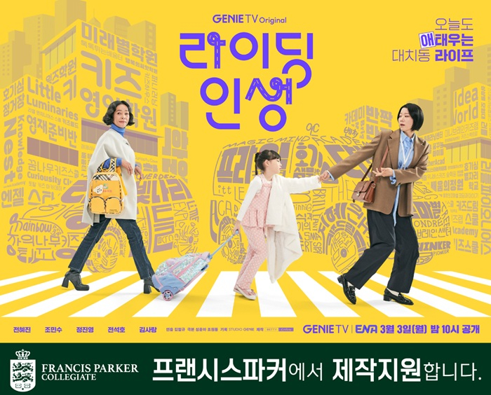 ‘라이딩 인생’은 딸의 '7세 고시'를 앞둔 열혈 워킹맘 정은이 엄마 지아에게 학원 라이딩을 맡기며, 벌어지는 3대 모녀의 '애'태우는 대치동 라이프를 그린 드라마로 전혜진, 조민수, 정진영, 전석호 등 ‘믿고 보는’ 배우들과 ‘마더’, ‘악의 꽃’을 연출한 ‘드라마 장인’ 김철규 감독이 의기투합해 기대를 높이고 있다.