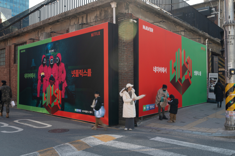 네이버는 이번 캠페인을 온·오프라인 이벤트로 확장하며 캠페인 효과를 극대화했다. 지난 12월 네이버 1784 사옥 루버에 ‘네넷’이라는 글자를 연출하고 오징어 게임의 대표 등장인물인 핑크가드들이 사옥 안에서 밖을 바라보는 사진을 공개해 양사 제휴에 대한 주목도를 높였다. 또, 오징어 게임의 딱지맨과 핑크가드가 서울·부산 지역에 등장하는 이벤트를 네이버지도 및 오픈톡과 연계해 진행하며 양사 간 시너지에 대한 이용자의 기대감을 끌어올렸다./q00006@sedaily.com