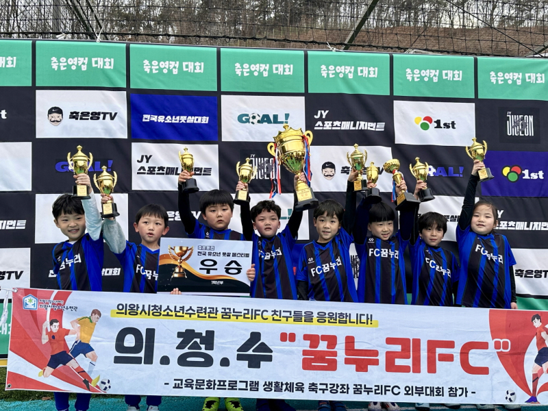 시에 따르면, 지난 15일 ㈜JY스포츠매니지먼트 주최로 경기도 화성에서 열린 이번 대회에는 전국 초등 취미반 50여 개 축구팀이 참가해 경쟁을 펼쳤습니다. 꿈누리FC는 초등 각 학년 부에 한 팀씩 출전했으며, 1학년부가 전승을 기록한 것을 비롯해 2학년부와 4학년부도 우승을 거뒀습니다.