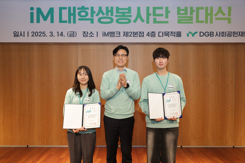 DGB사회공헌재단이 2013년부터 운영해온 iM대학생봉사단은 올해 대학생 55명으로 구성됐다. 봉사단은 ▲저소득 가정 아동·청소년의 건강한 성장을 지원하는 ‘멘토링팀’ ▲금융소외계층을 위한 포용금융을 실천하는 ‘금융교육팀’으로 나뉘어 지역 사회 곳곳에서 따뜻한 금융을 실천할 예정이다.