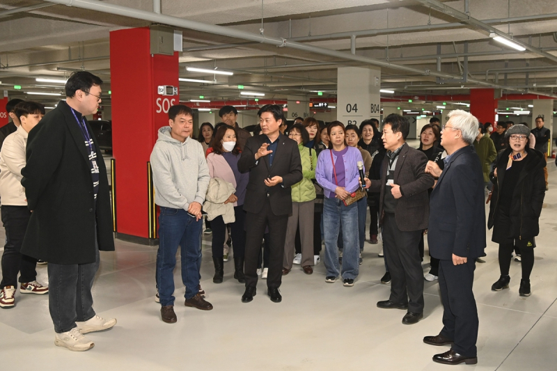 여월공영주차장은 전국 최초로 가로주택정비사업조합과 협력해 ‘아파트 같은 마을주차장’ 공동건립 사업을 추진한 사례로, 85면 규모의 주차 공간이 조성되었습니다. 조 시장은 현장에서 사업 현황 및 운영계획을 점검하고, 주민들과 주차장 운영 방식에 대한 의견을 나눴습니다.