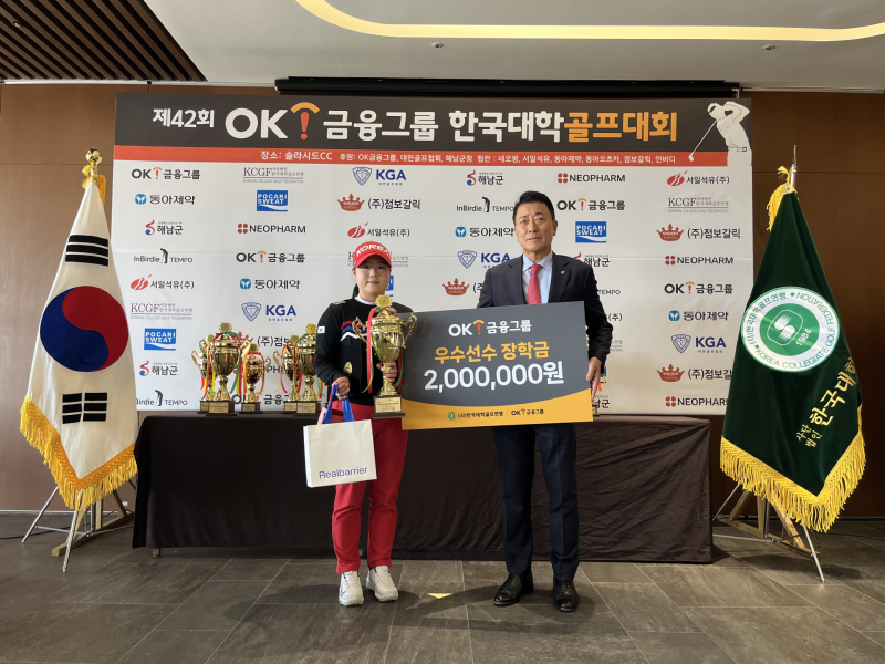 OK금융그룹은 이번 대회에서 각 부문 우승자에게 200만원의 장학금과 상패를 전달했다. OK금융그룹은 올해로 12회째 한국대학골프대회를 통해 장학금을 지급했으며, 누적 장학생은 총 52명에 달한다.