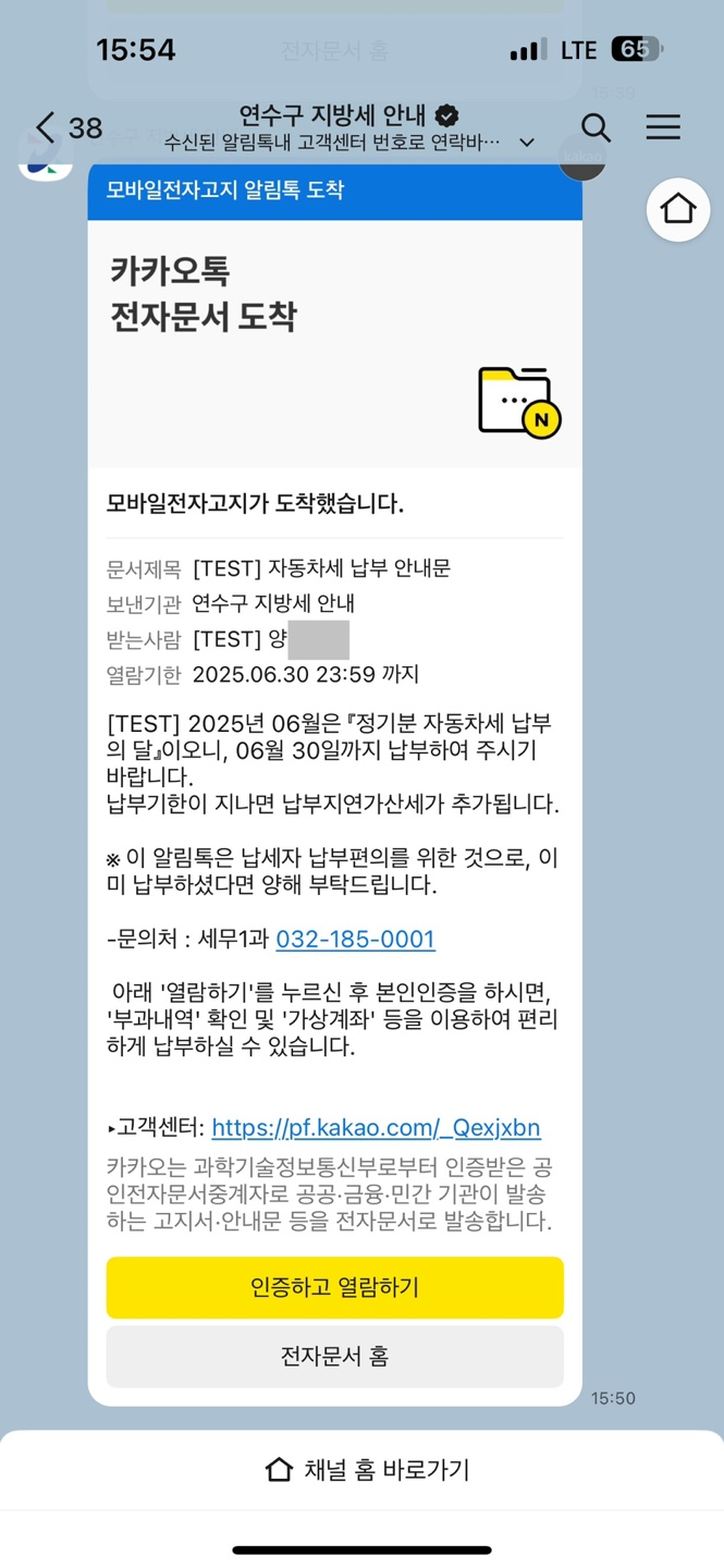 3월 20일부터 체납액 안내에서 정기분 지방세까지 포함한 납부 안내를 실시간으로 제공하며, 카카오 알림톡을 통해 모바일 전자문서로 납부 안내문을 발송한다고 밝혔습니다.