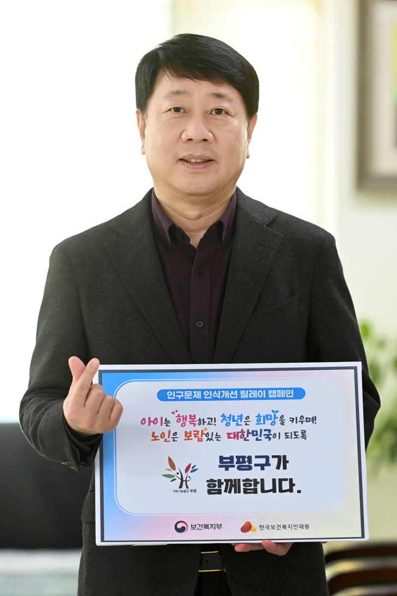 [서울경제TV 인천=김혜준 기자] 차준택 인천 부평구청장이 ‘인구문제 인식개선 릴레이 캠페인’에 동참했습니다.