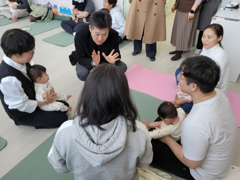 ‘아빠놀이터’는 6~12개월 영유아와 아빠가 함께 참여하는 체험 위주 프로그램으로, 부모-자녀 간 긍정적 애착 형성 및 아빠의 육아 참여를 활성화하는 데 목적을 두고 있습니다. 이날 김정헌 구청장은 아빠들과 구에서 추진 중인 육아 정책과 지원 현황을 설명하고, 육아 관련 애로사항을 청취하며 향후 정책 방향을 논의했습니다.