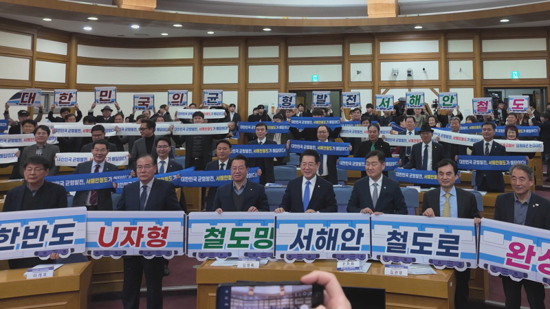 현재 수도권과 충청권은 서해선, 장항선 등 철도망이 구축된 반면, 서해안 철도는 ‘U자형 국가철도망’에서 마지막 단절 구간으로 남아있습니다. 이에 따라 전북·전남 지자체와 지역 국회의원들이 국가 철도망 구축계획에 서해안철도를 반영해야 한다며 정책포럼을 열고 공동 건의문을 발표했습니다. 최영 기잡니다.