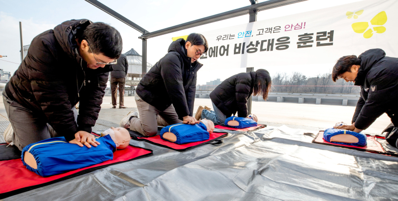 직원들은 곧바로 다른 승객들과 함께 119 구급대가 도착할 때까지 심폐소생술(CPR)을 실시했다. 다행히 승객은 의식을 회복했고 몇 분 후 도착한 구급대의 도움을 받아 병원으로 이송됐으며, 해당 항공편은 승객 수하물 하기 등 필요한 조치 후 정상적으로 운항했다.