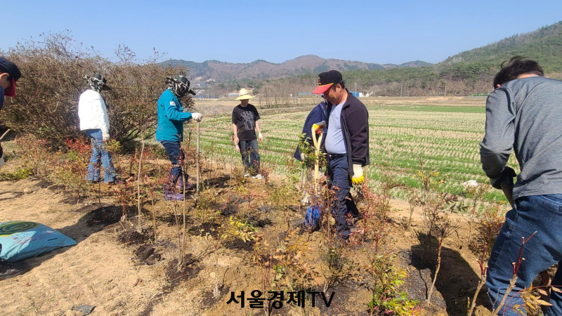 이들은 행정복지센터 화단과 복지회관 앞 소공원에 만천나무 식재와 주변 환경을 정비했다.